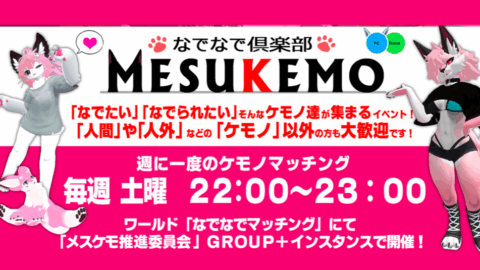 「なでなで茶屋 牝獣(メスケモ個室接客イベント)」や「なでなで倶楽部 MESUKEMO(メスケモなでなでマッチングイベント)」など、誰でもメスケモを十分に摂取できるイベントを開催しています。