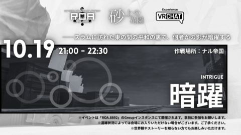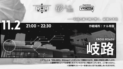 ・ロールプレイイベント『砂上の花園』:ゲームとRPが融合した、新感覚のロールプレイイベントを楽しめます(隔週日曜日開催)。