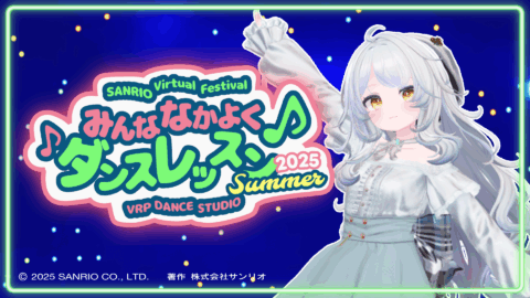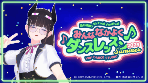 SANRIO Virtual FesとVRCのダンススクール、VRP DANCE STUDIOのコミュニティコラボです! 普段さまざまなジャンルを教えているVRPダンススタジオのインストラクターが、サンリオ音楽に合わせて、とってもたのしいレッスンをお届けします! シンプルな振りなので、ダンス初心者の方はもちろん、3点やデスクトップの方も大歓迎! 音楽に合わせて体を動かす楽しみを、いっしょにエンジョイしましょう! レッスンだけでなく、このイベントのために作られた特設会場やちびっこダンサーズによるダンスショー、パーティクルライブに囲まれて、まるでパレードのダンサーになった気分で踊れちゃいます 第二回のインストラクターはLu-nyan、スペシャルゲストはシナモロール!