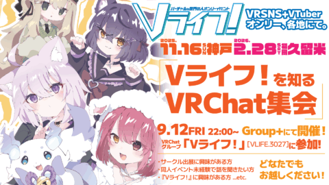 『Vライフ!』は、VRChatをはじめとしたVRSNSや、Vtuberなどの同人作品を頒布できるリアル同人イベントです。